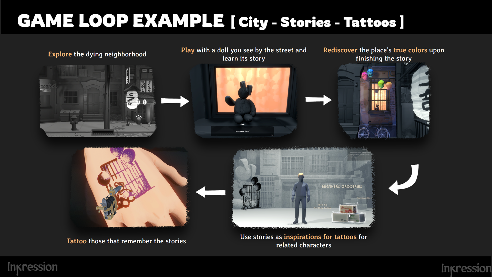 With our players as the tattoo artist of the dying neighborhood, Inkression sets them onto the journey to uncover, record, and remember as many stories as possible before everything is demolished for good.
